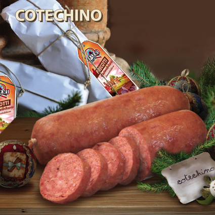 Riconoscimenti. Menzionati nella Guida Gambero Rosso 2018 come "migliori cotechini artigianali" INGREDIENTI: Carne di suino, sale, spezie, aromi. Antiossidante: E301 Conservante:E250. Origine della carne suina: nascita, allevamento e macellazione: Italia. NO LATTE E LATTOSIO - NO OGM DICHIARAZIONE NUTRIZIONALE: Energia kj 1214/kcal 293, Grassi 25g di cui acidi grassi 8,2g, Carboidrati 0,5g di cui zuccheri 0,1g, Proteine 17g, Sale 2,2g. PESO: 500 GRAMMI CIRCA.