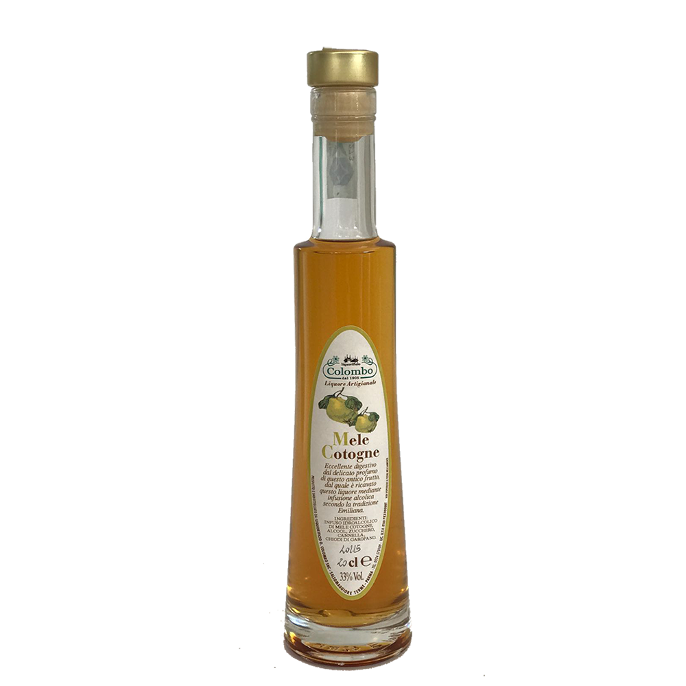 Può essere servito a temperatura ambiente o ghiacciato. Ingredienti: infuso idroalcolico di mele cotogne, alcool, zucchero, cannella, chiodi di garofano.