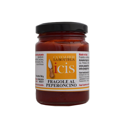 Ingredienti: Fragole (70%), zucchero, peperoncino piccante (1,7%), succo di limone. Non contiene conservati nè allergeni